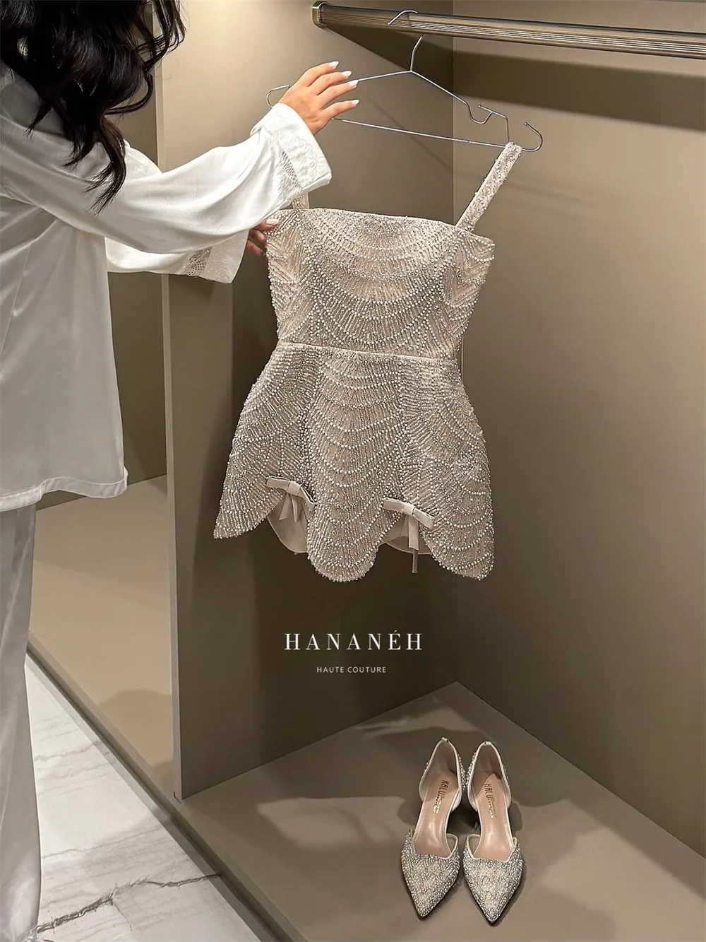 Amanda Customized Glitter Beading A-Line Sleeveless Wedding Dress Sexy Mini vest