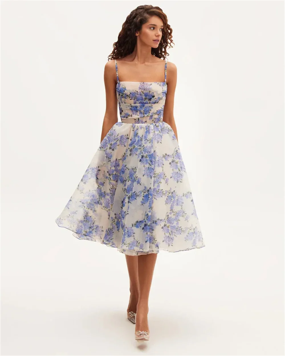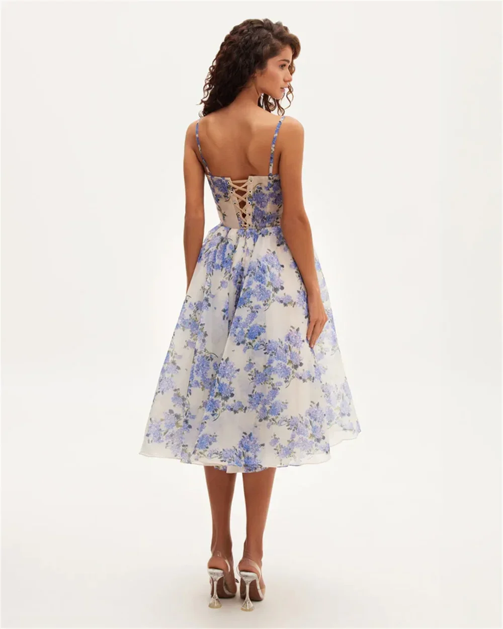 Amanda Hydrangea Spaghetti Strap Midi Dress Sweet Knee Lenght Vestidos De Noche