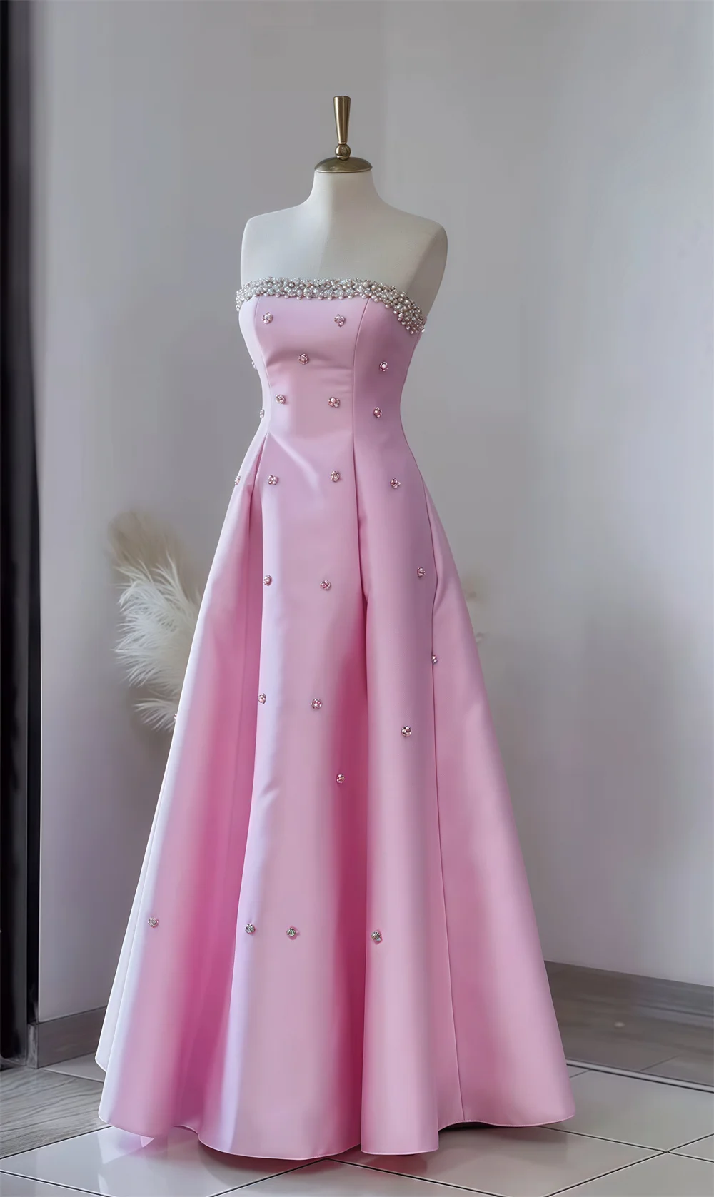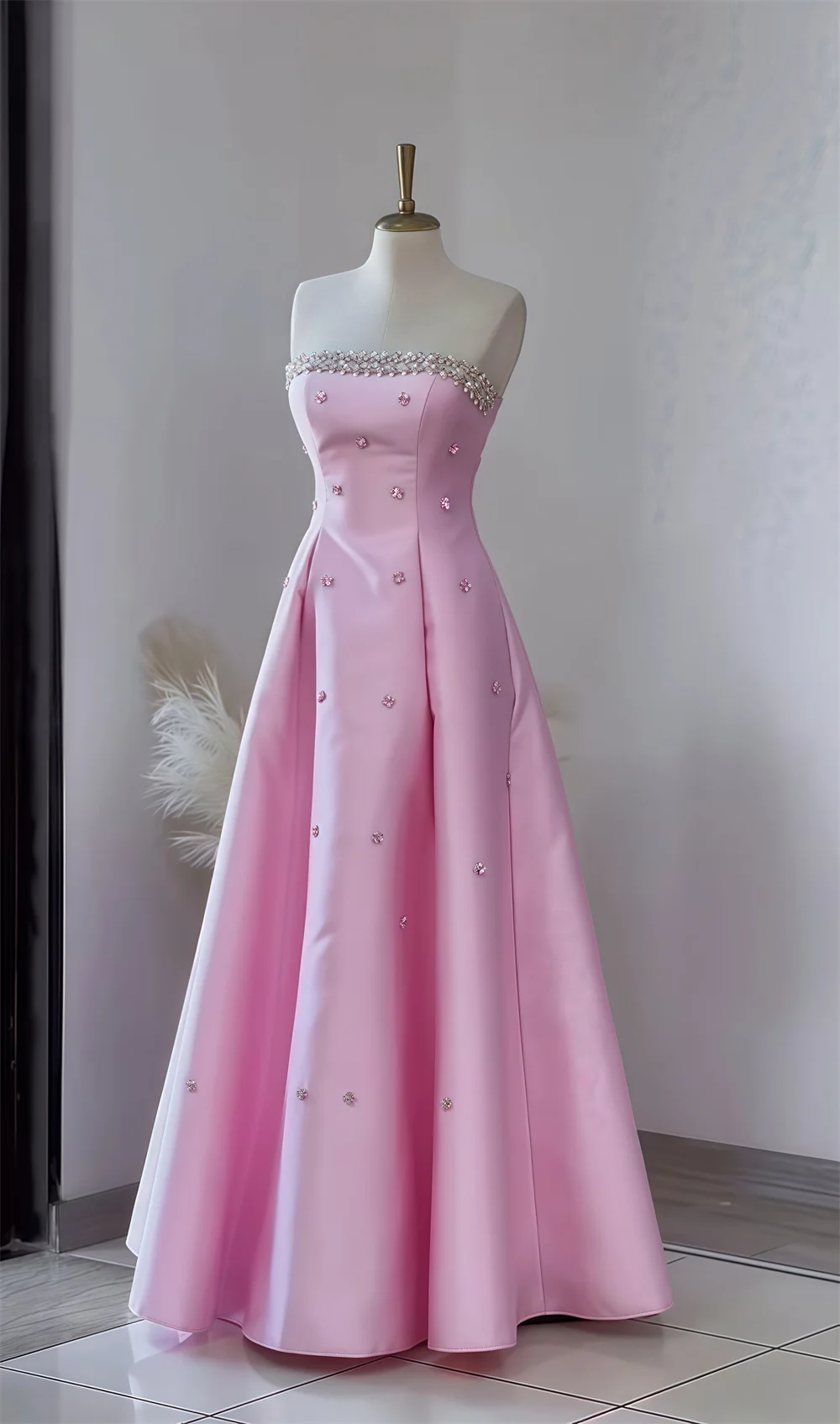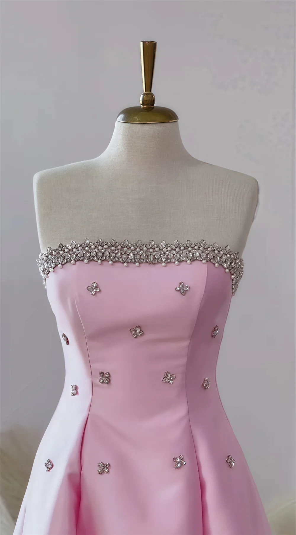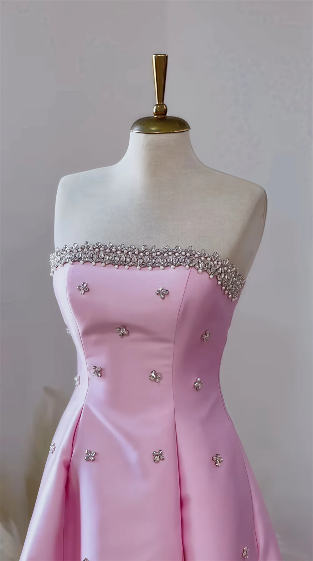 Contessa Dubai Customized Crystal Strapless A-line Prom Dress Pink Luxury Evenin