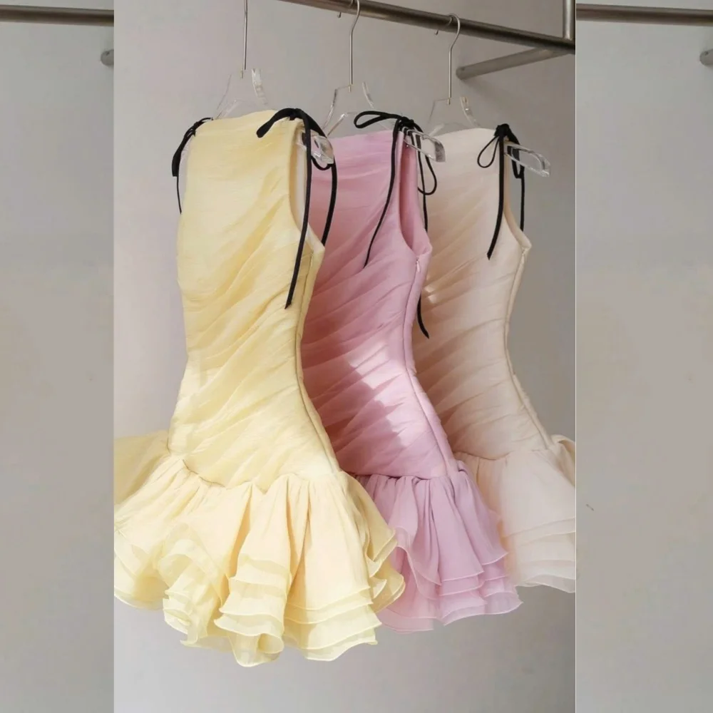 Customized Formal Organza Pleat Pleat A-line O-Neck Short Dresses Bespoke Occasi