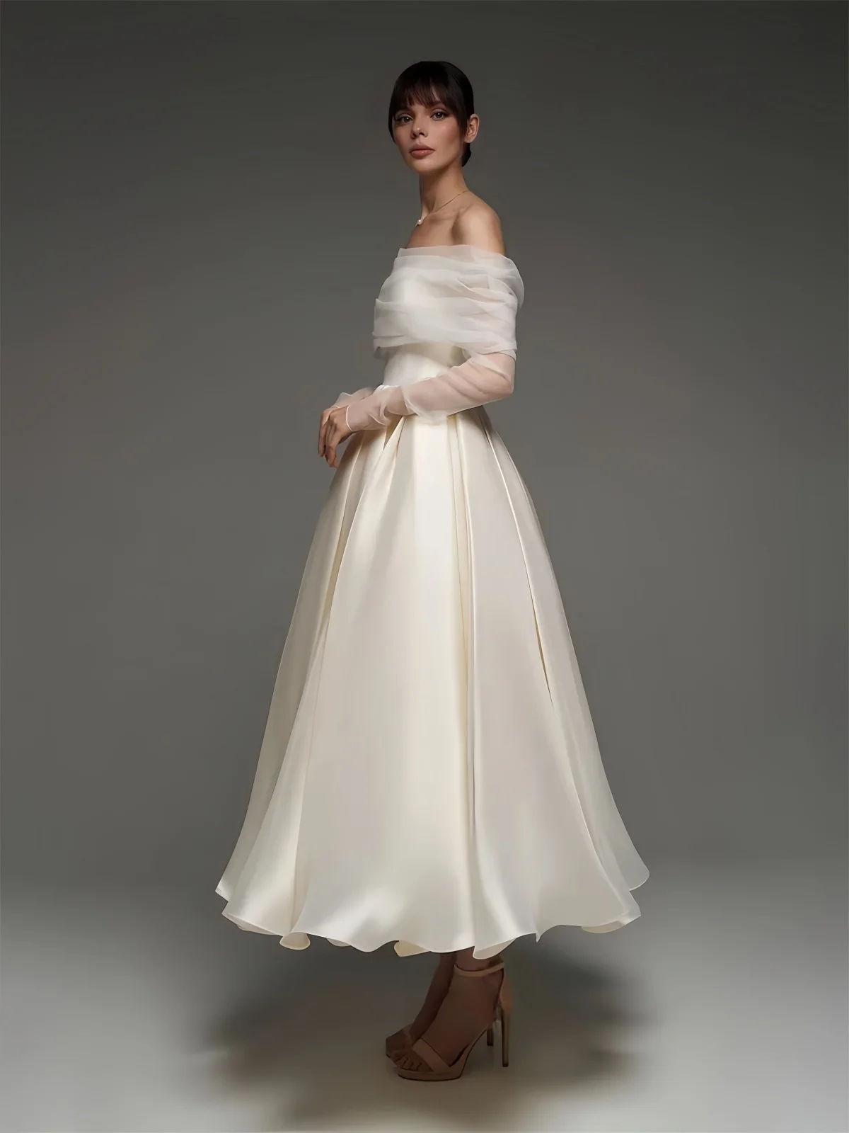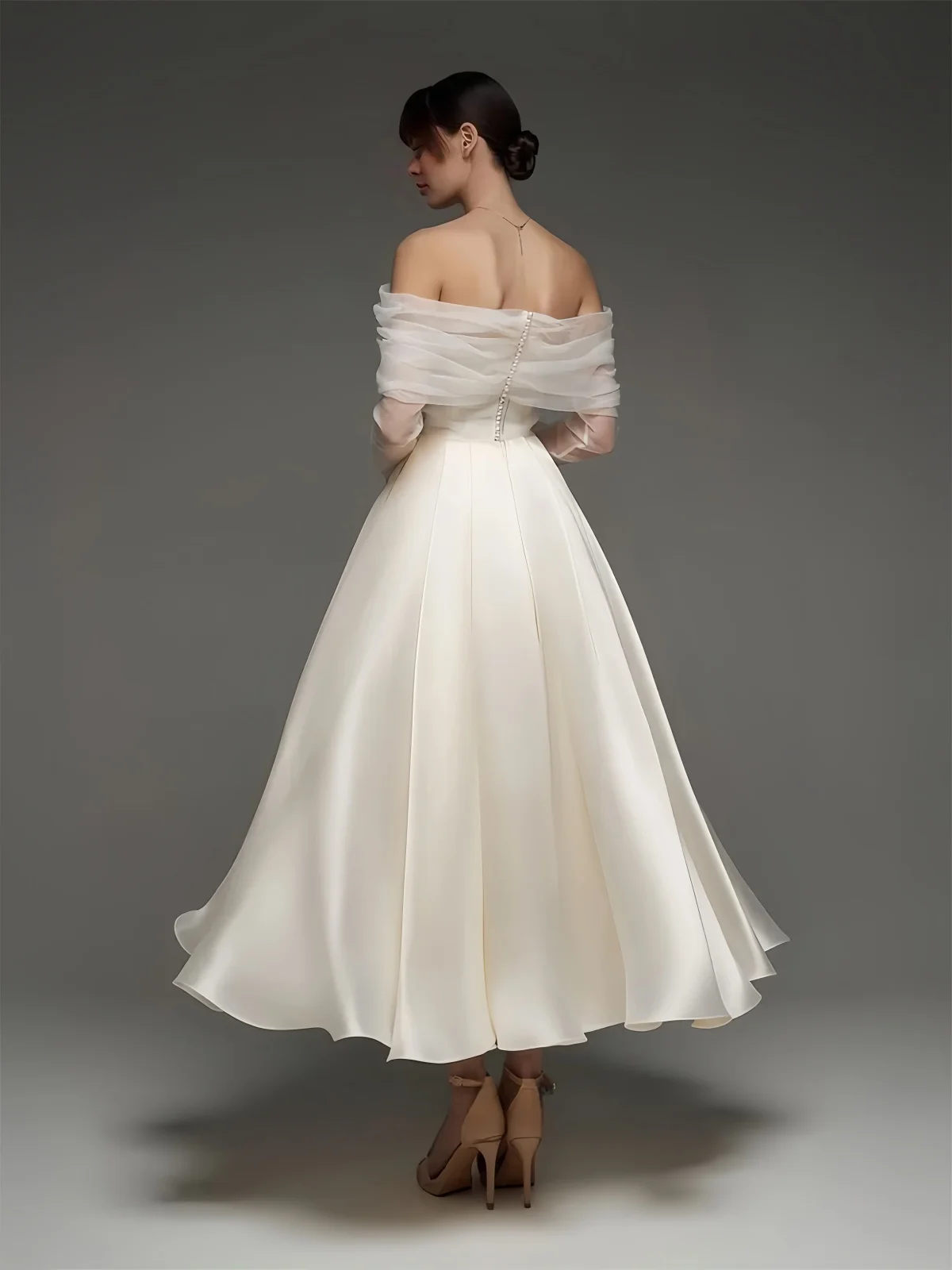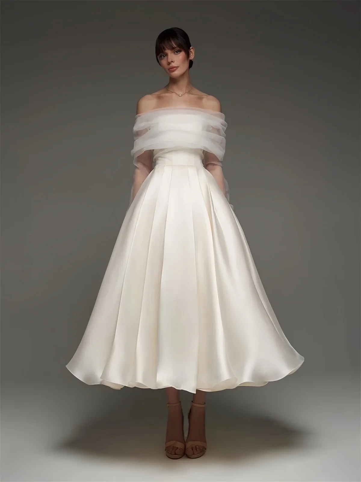 Customized Off Shoulder Ankle Length Wedding Dresses A Liine Elegant Satin Weddi