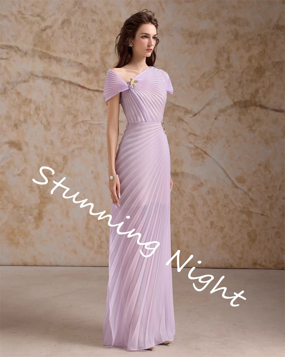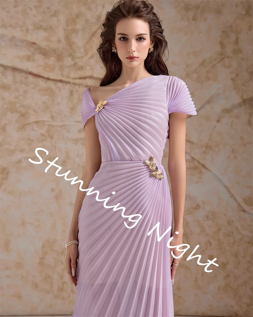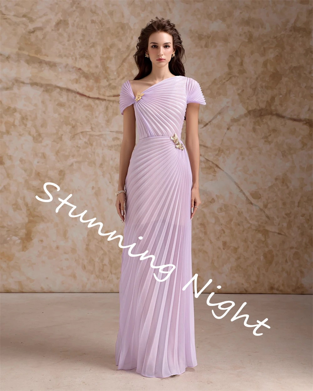 Customized Temperament Lavender Chiffon Evening Dress Short Sleeves Celebrity