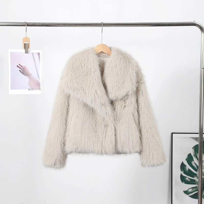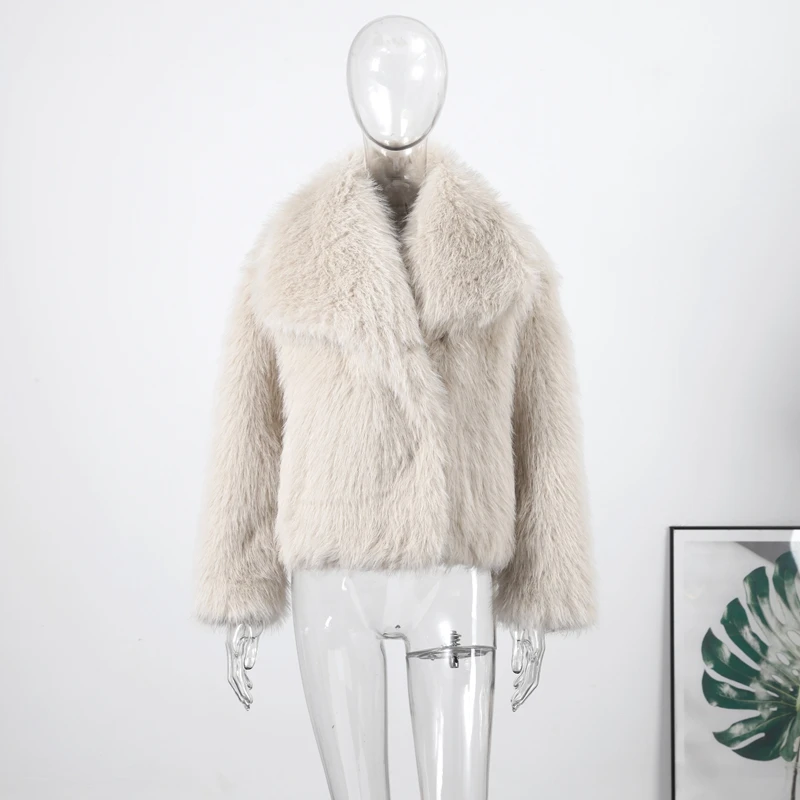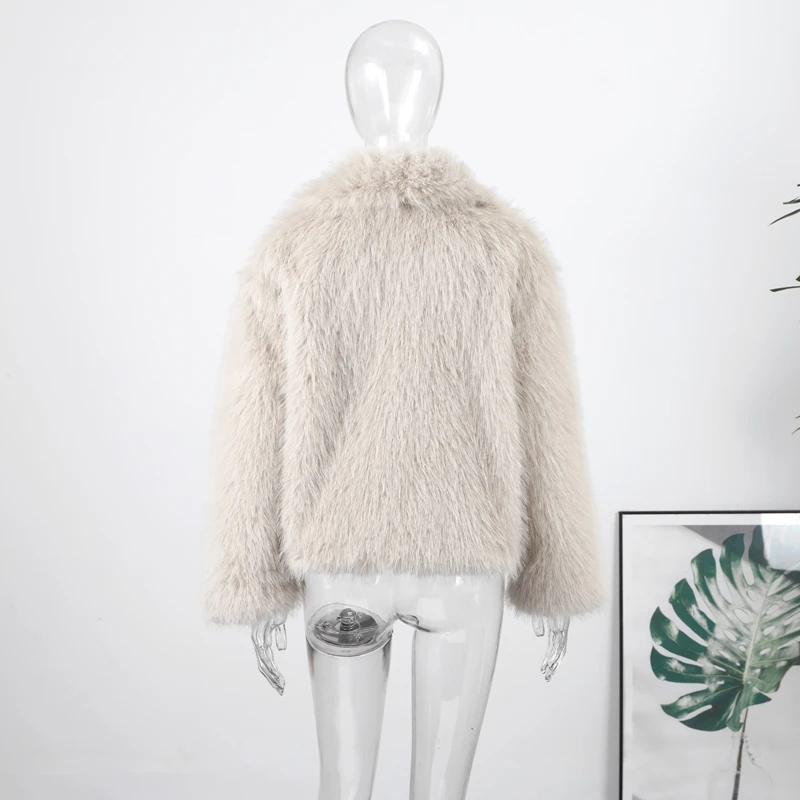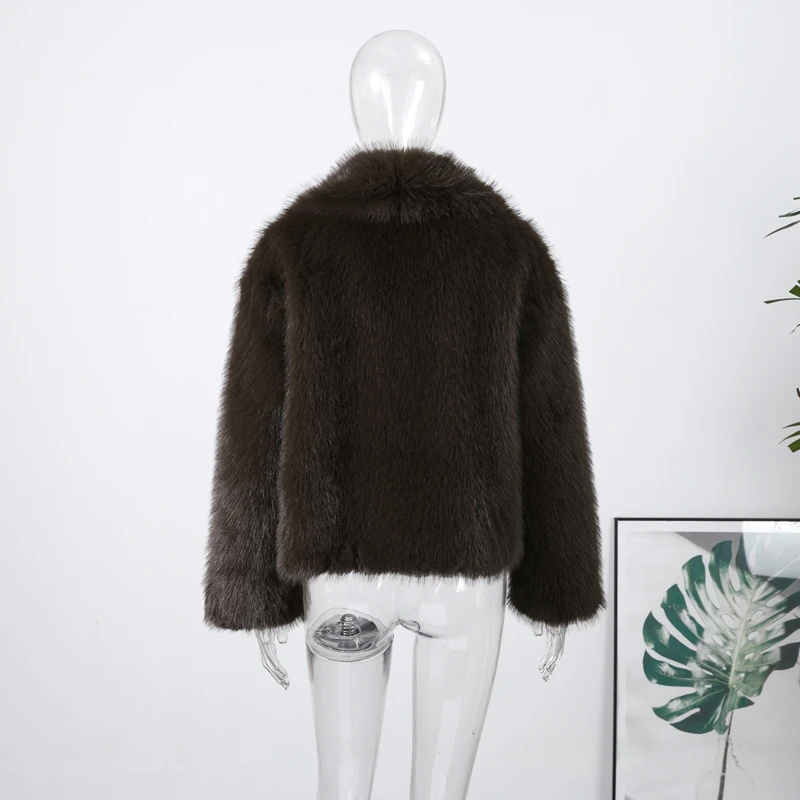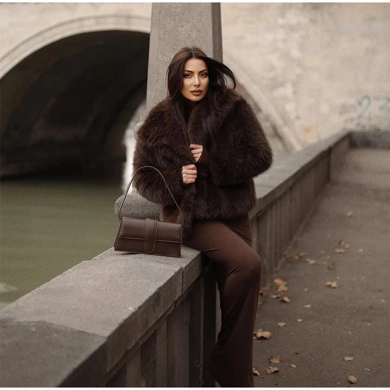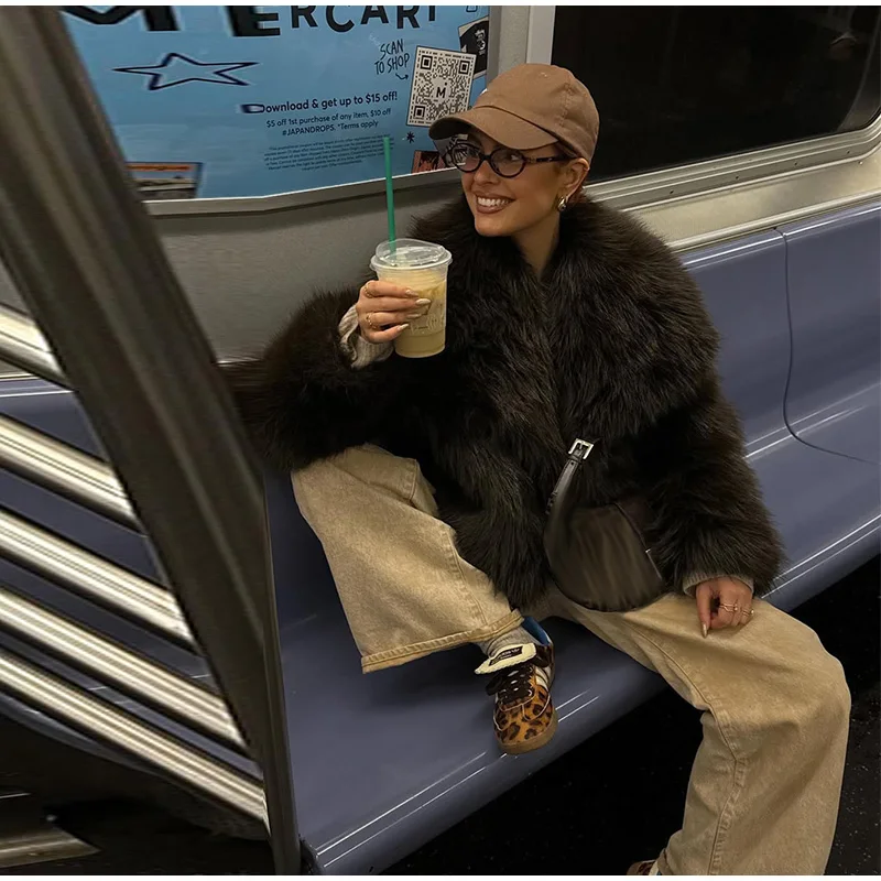Elegant Luxury Thicken Brown Faux Fur Coats Women Loose Lapel Long Sleeve Furry