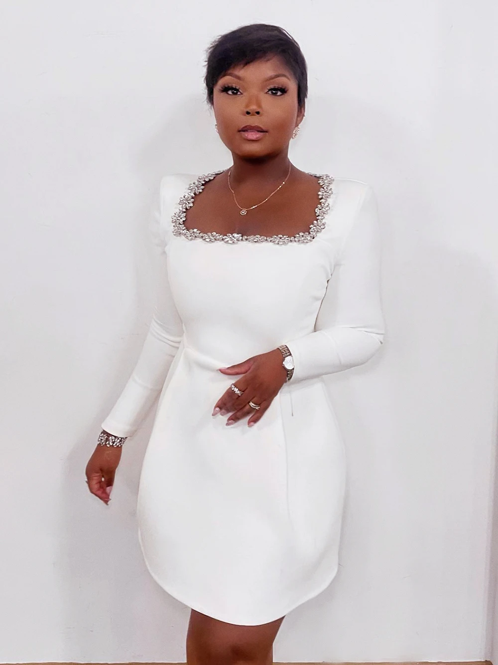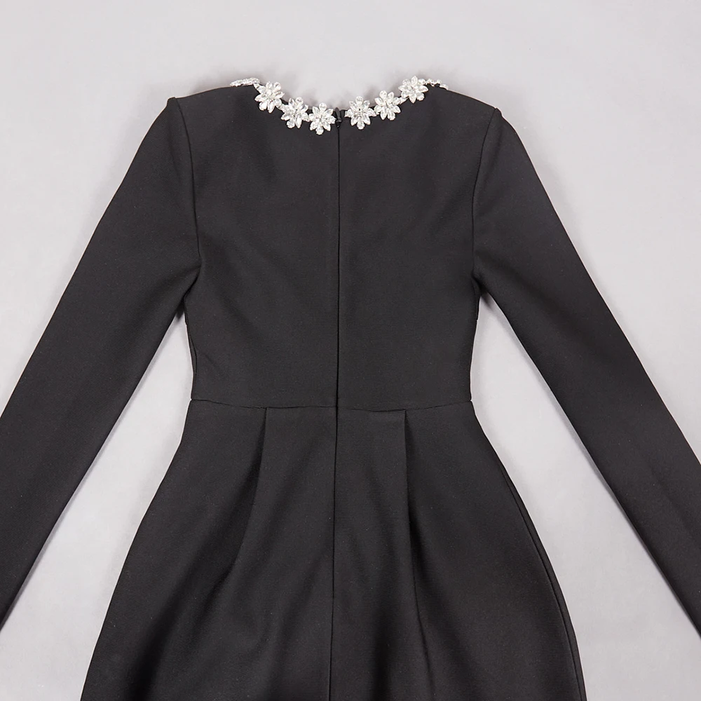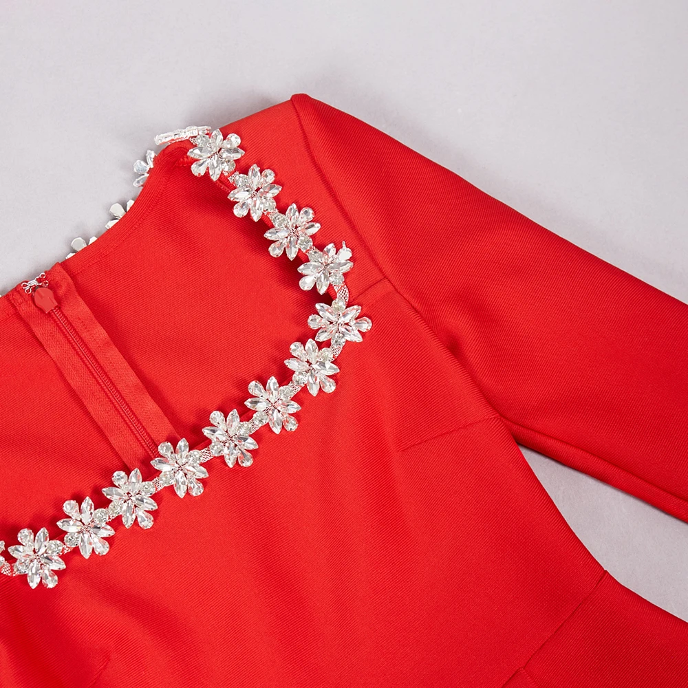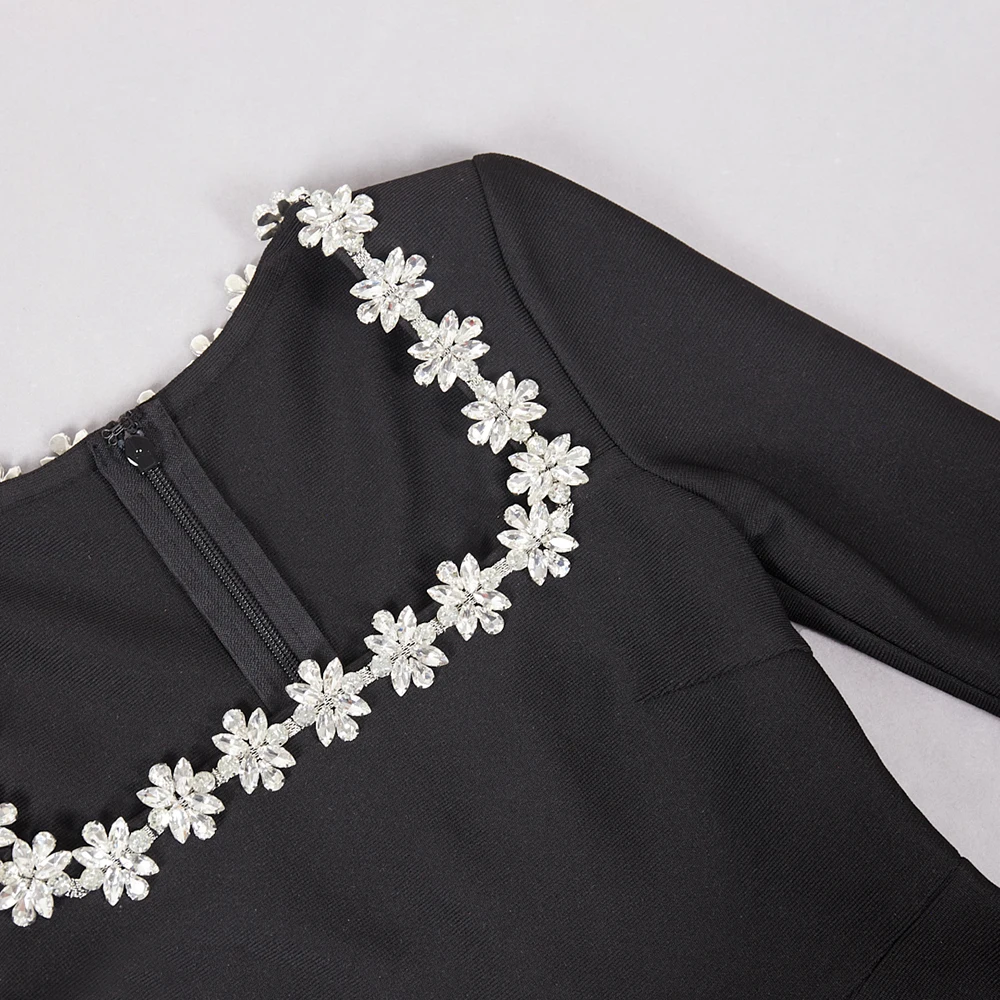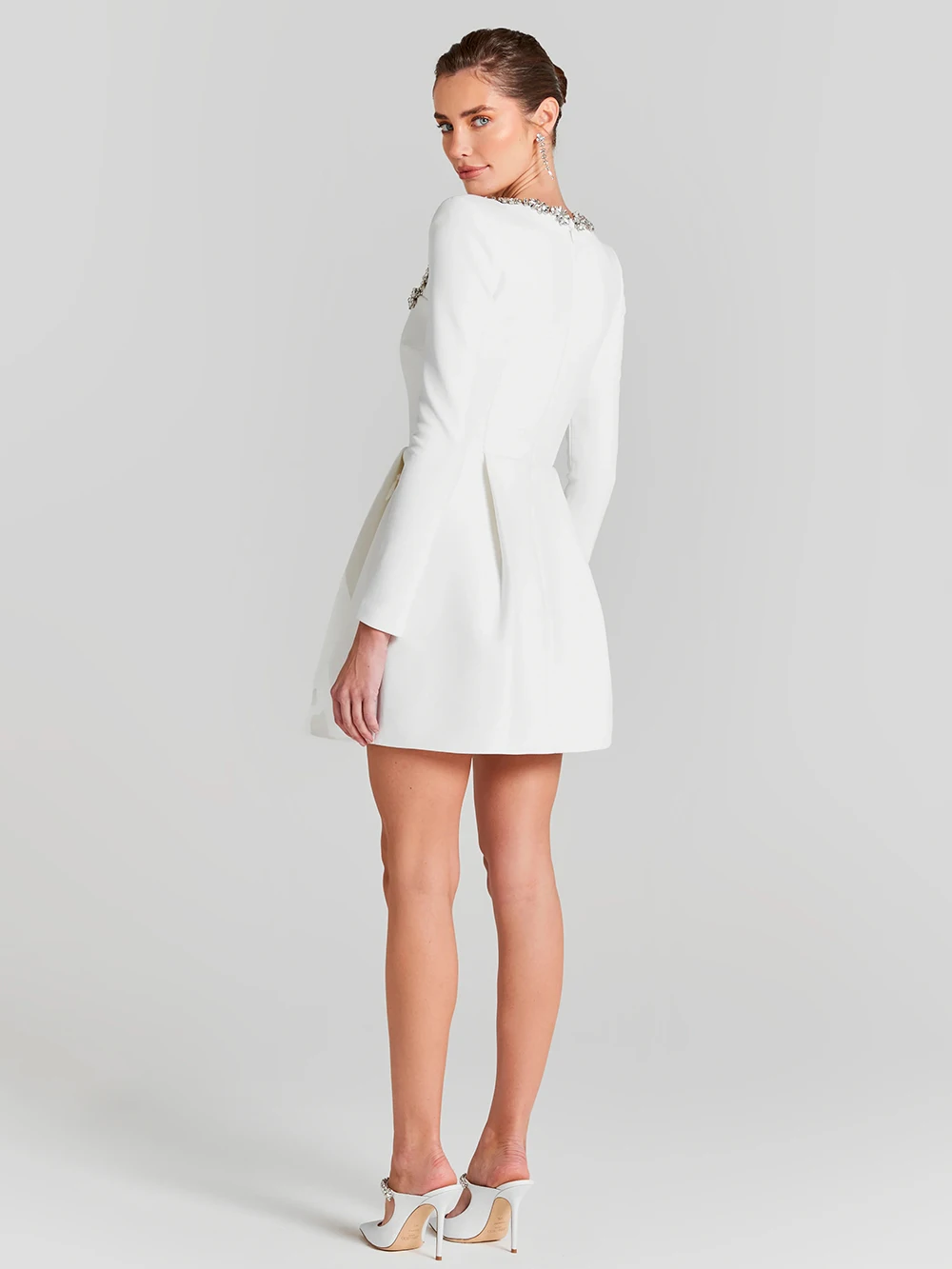Modphy Elegant Mini Square Collar Diamond Evening Dress Short A-Line Long Sleeve