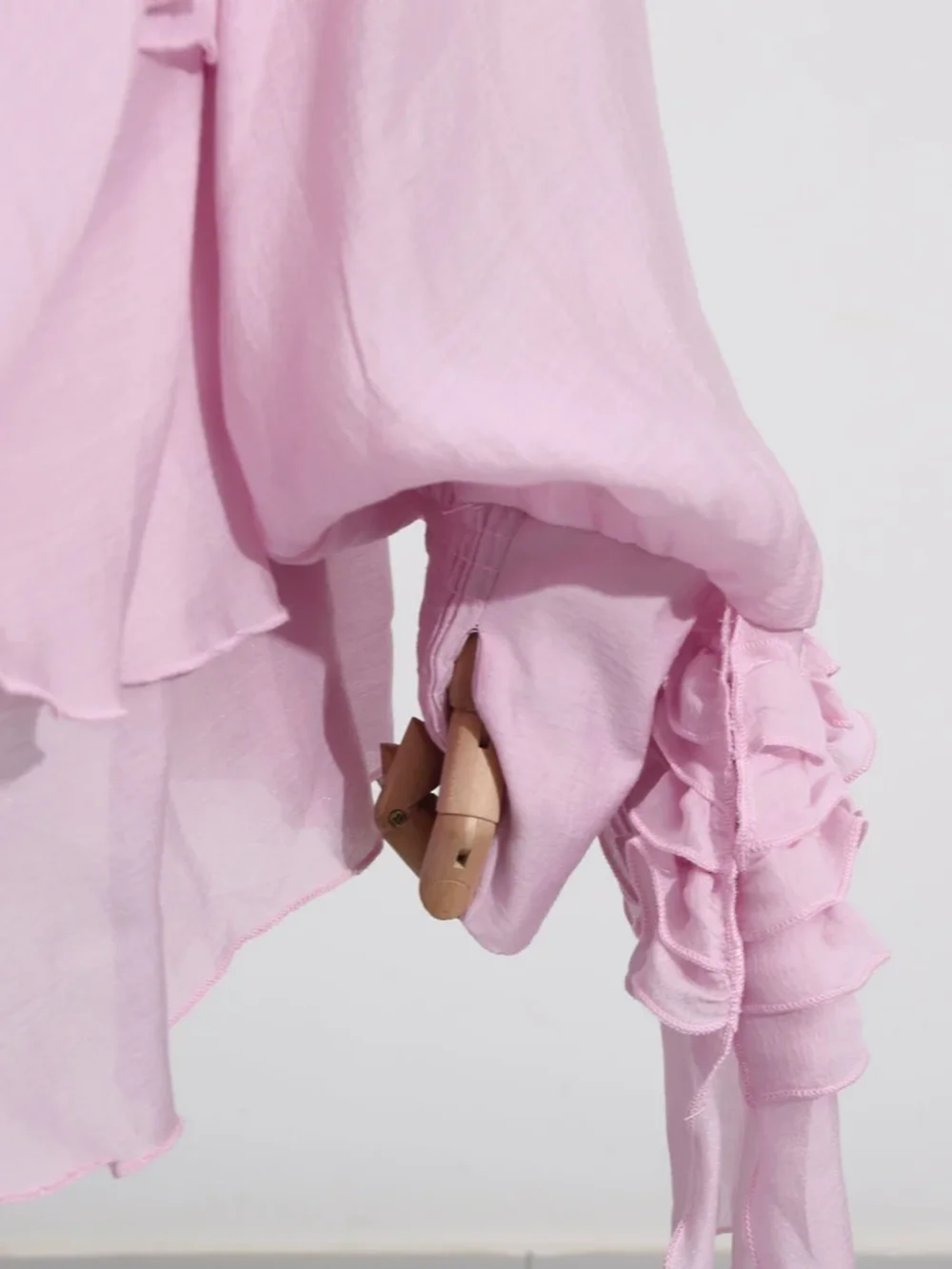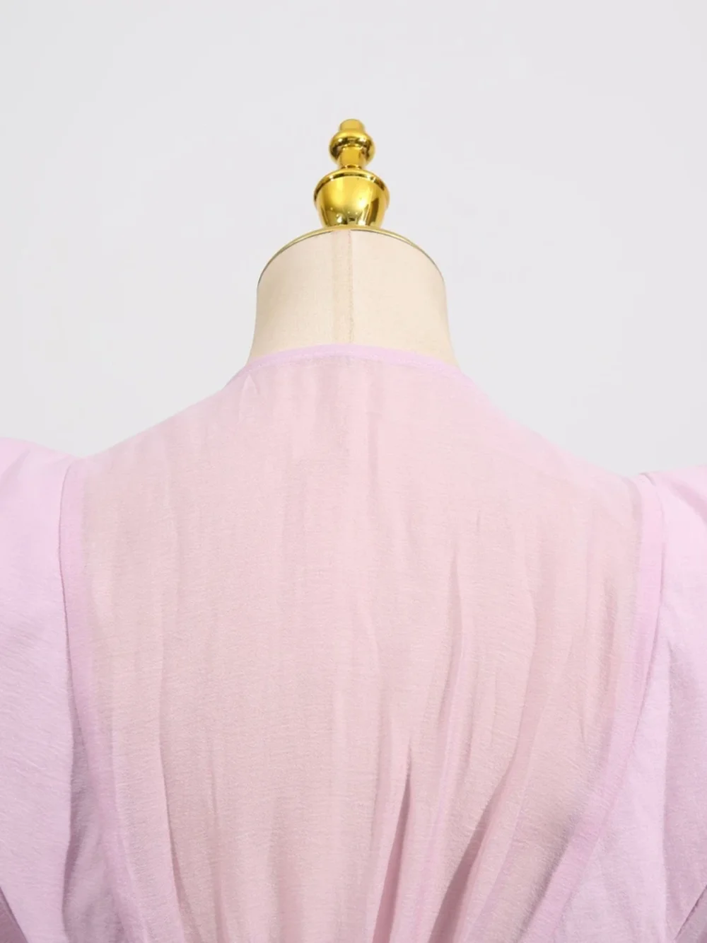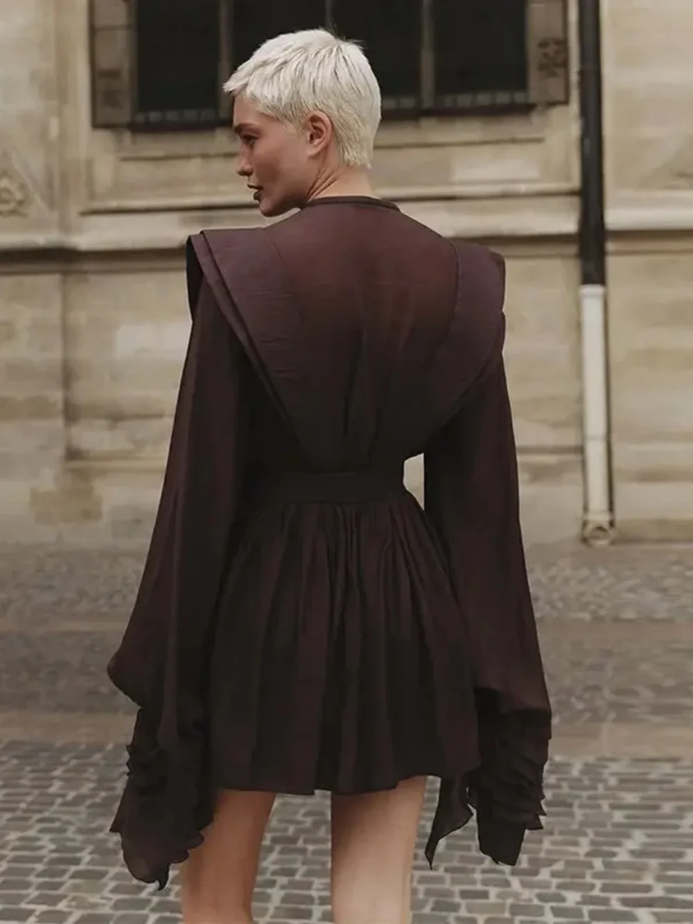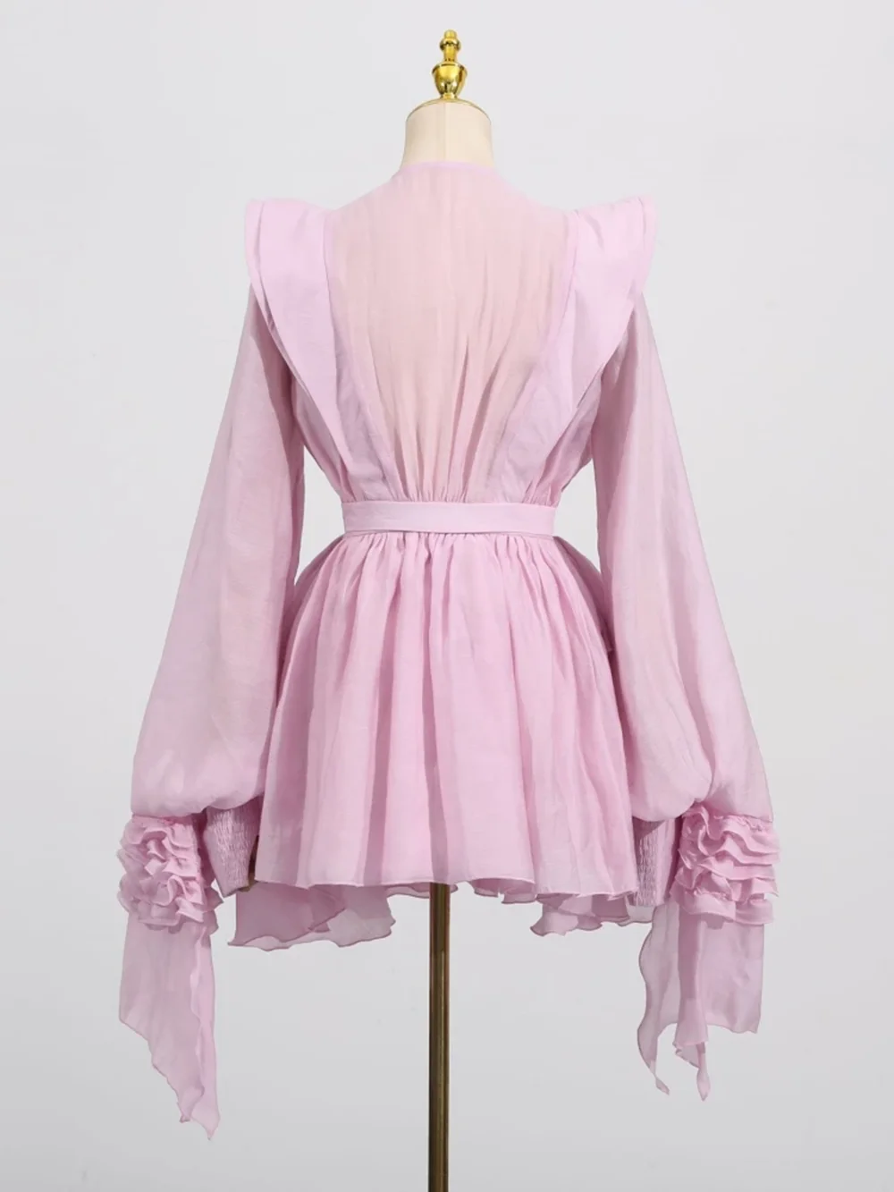 Modphy Fashion Women Ruffles Short Dress Elegant O-Neck Lace Up Lantern Long Sle