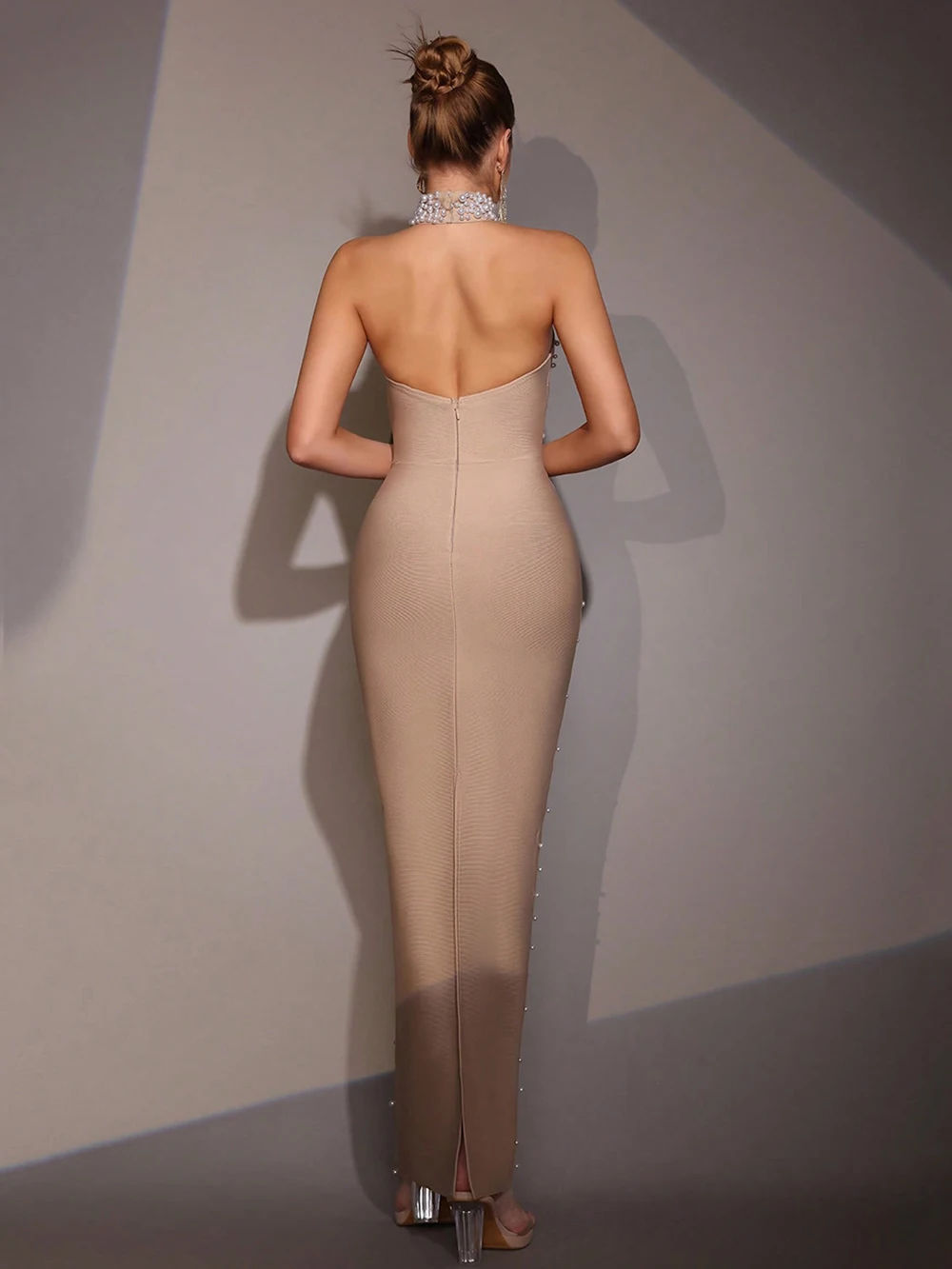 Modphy New Women Sexy Halter Pearl Beads Bodycon Bandage Maxi Dress Off Shoulder