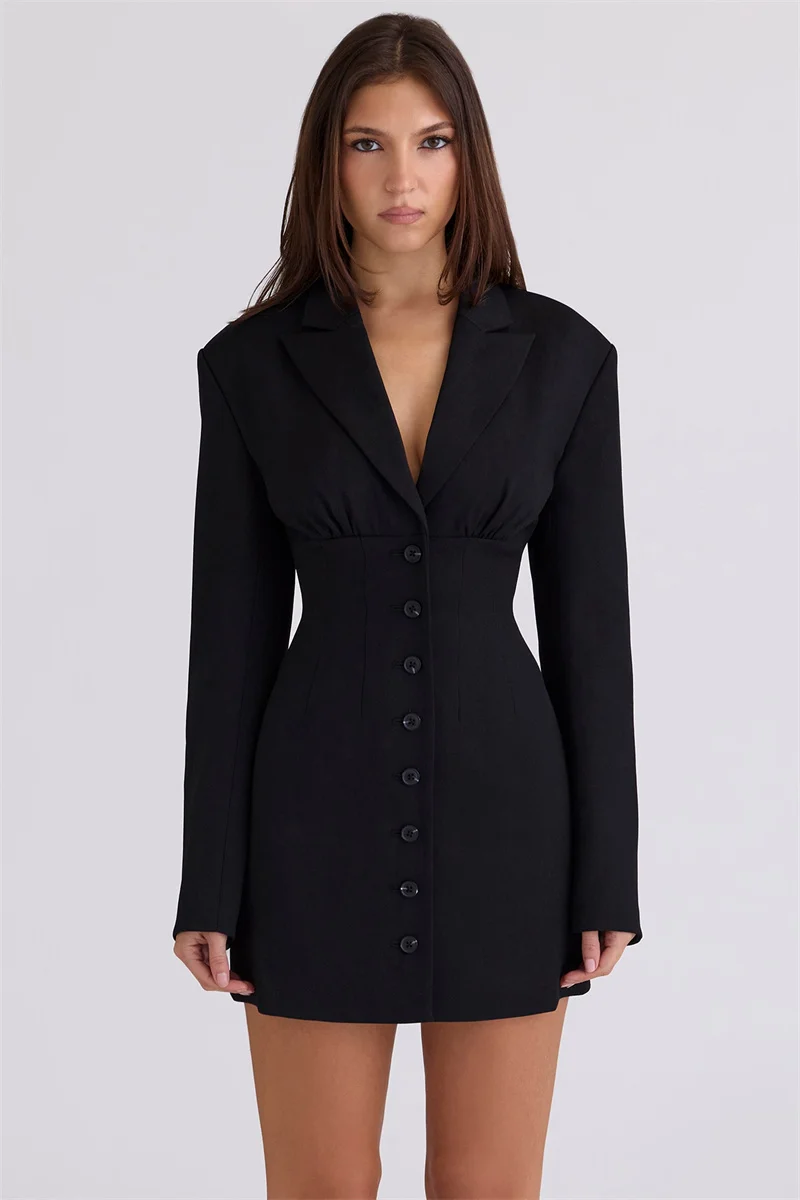 Mozision Long Sleeve Single-breasted Sexy Blazer Dress Women Gown Elegant Black