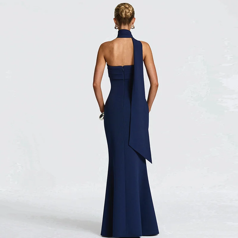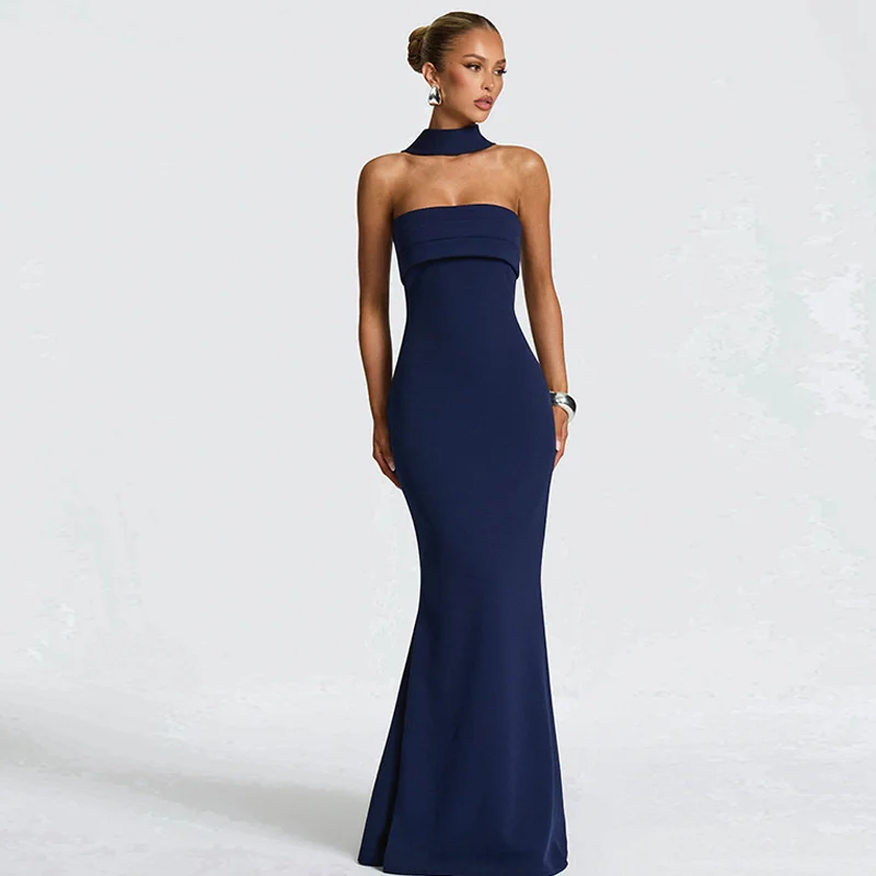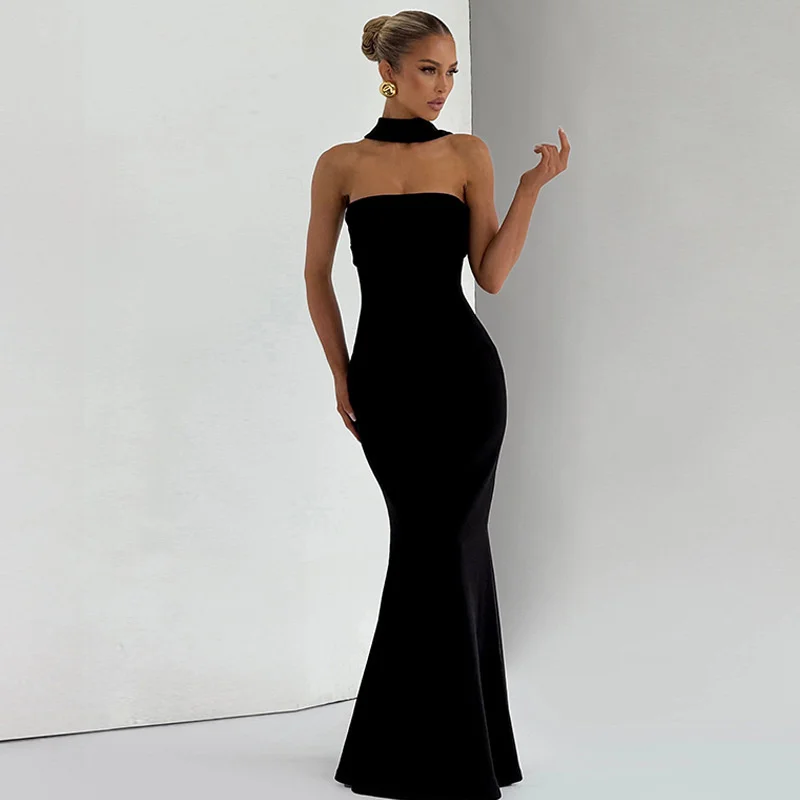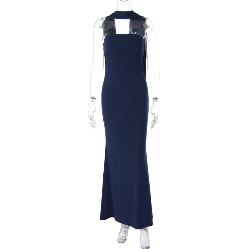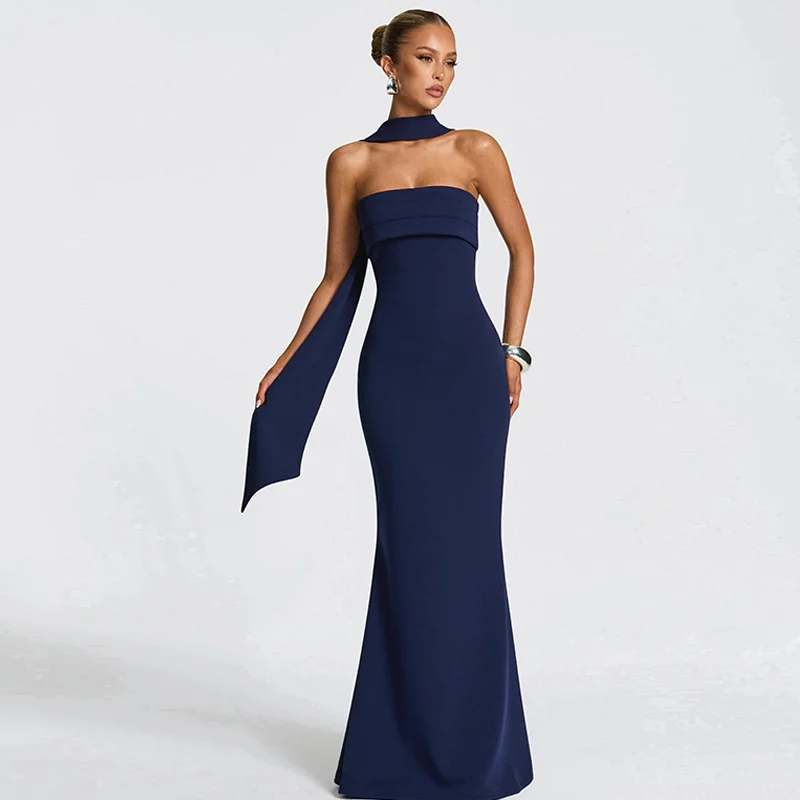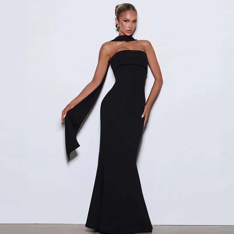 Mozision Off-shoulder Strapless Sexy Maxi Dress Women Gown Scarf Collar Sleevele