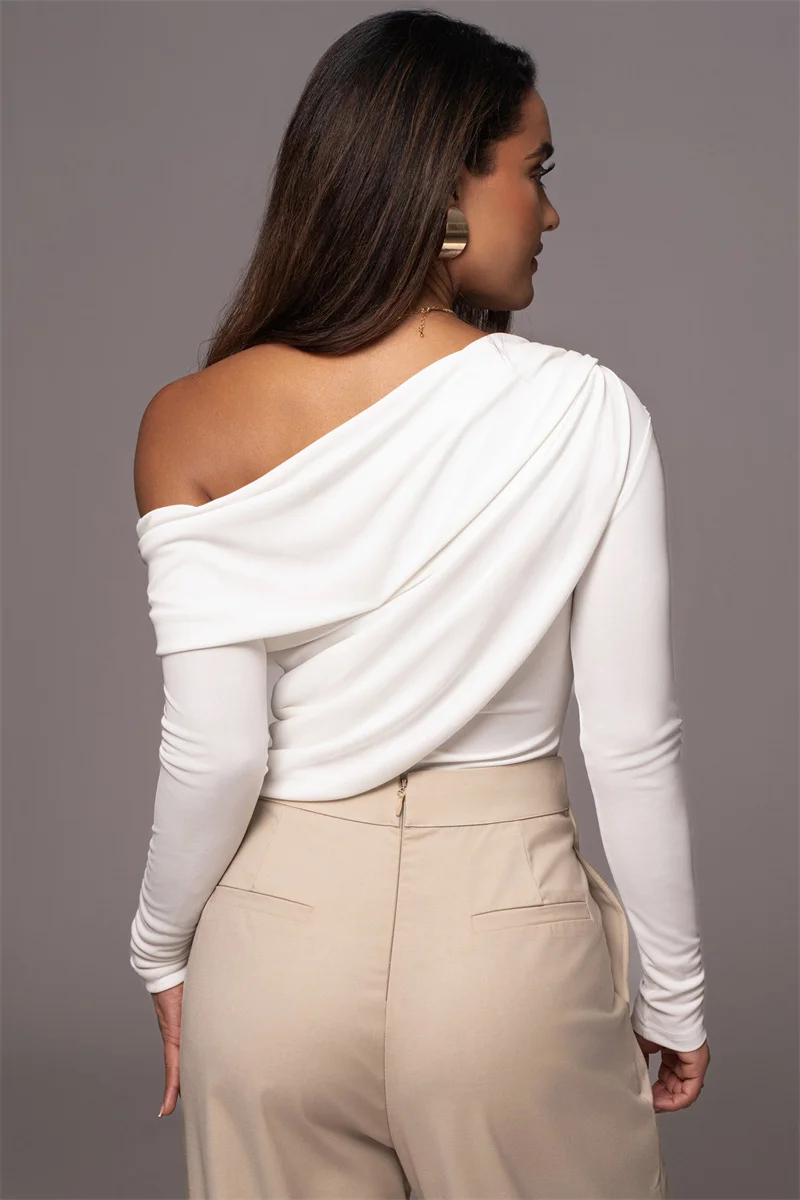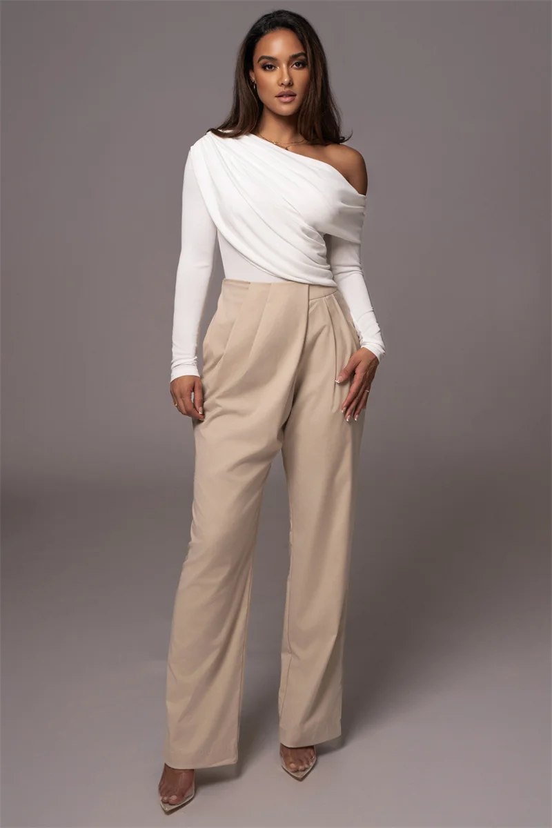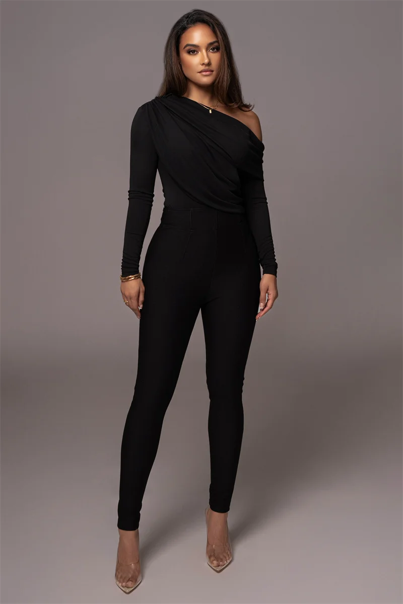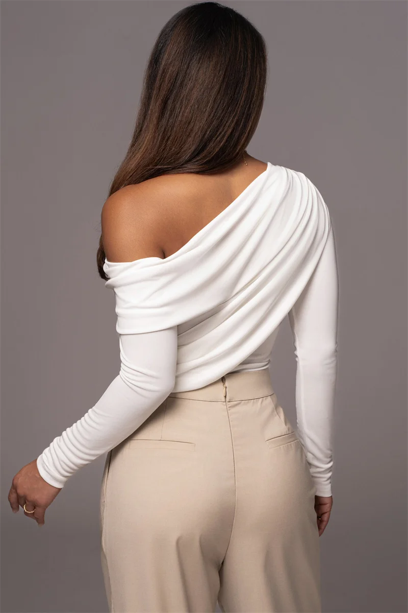 Mozision One Shoulder Long Sleeve Sexy Bodysuits Women T-shirt Elegant Backless