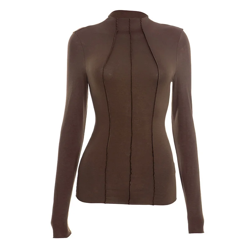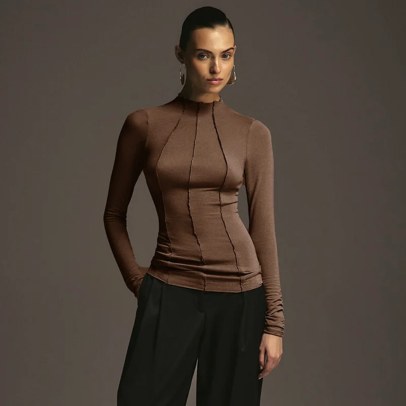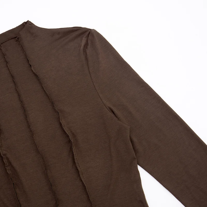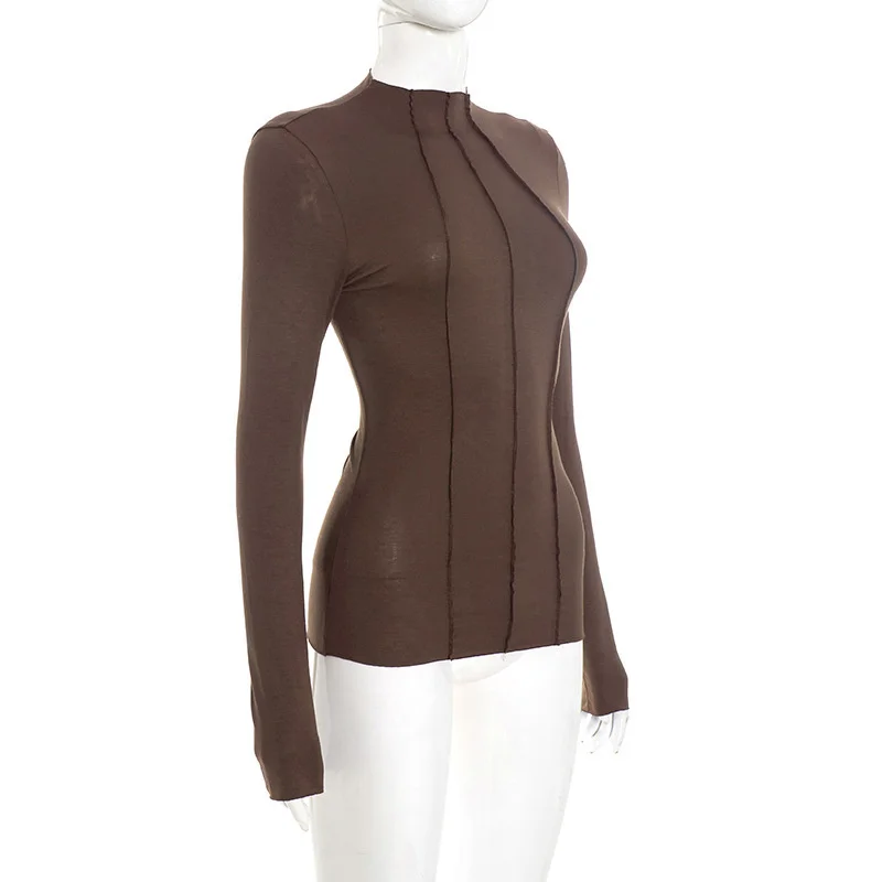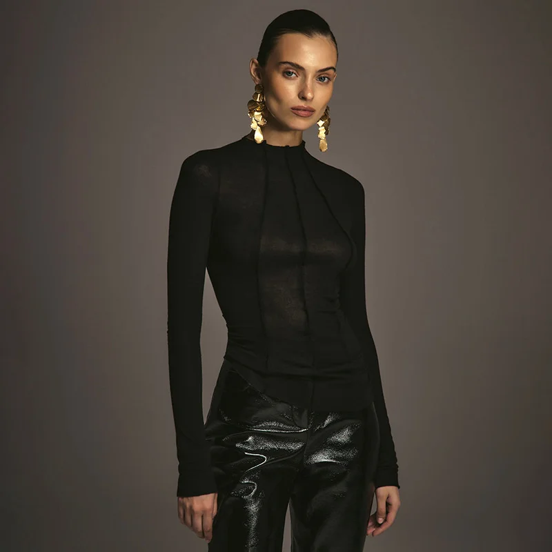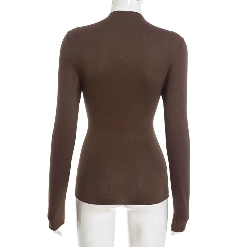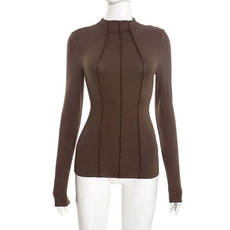 Mozision Patchwork Long Sleeve Sexy T-shirt Women Top Elegant O Neck Slim Pullov