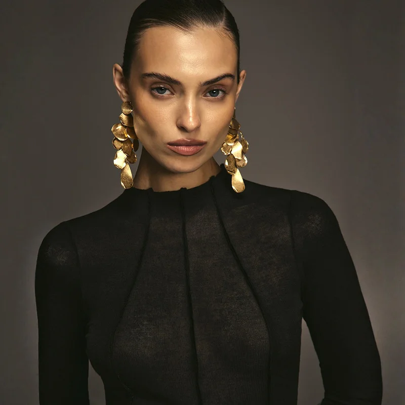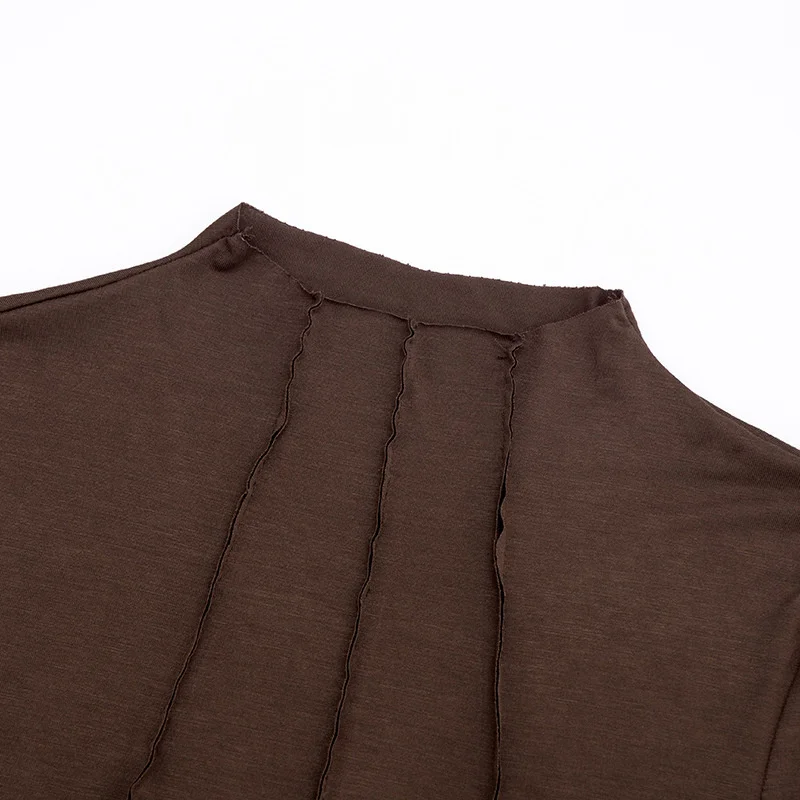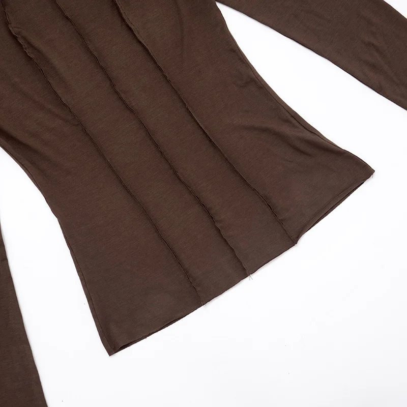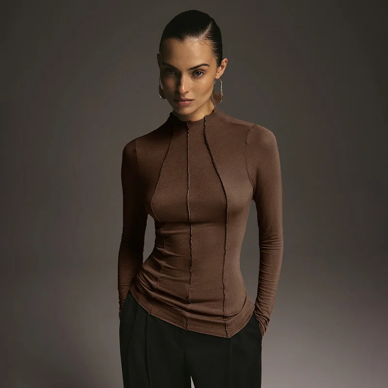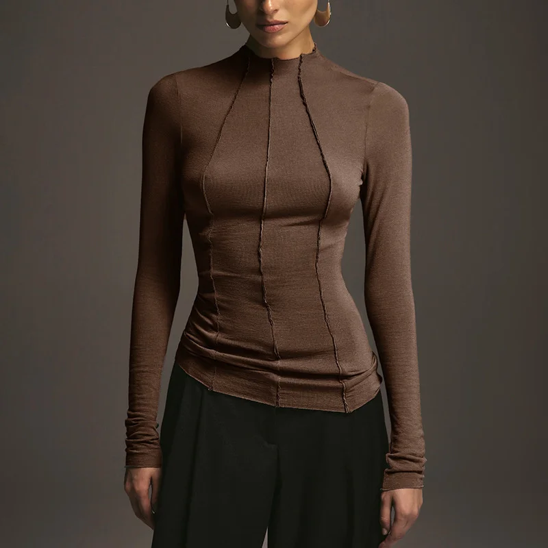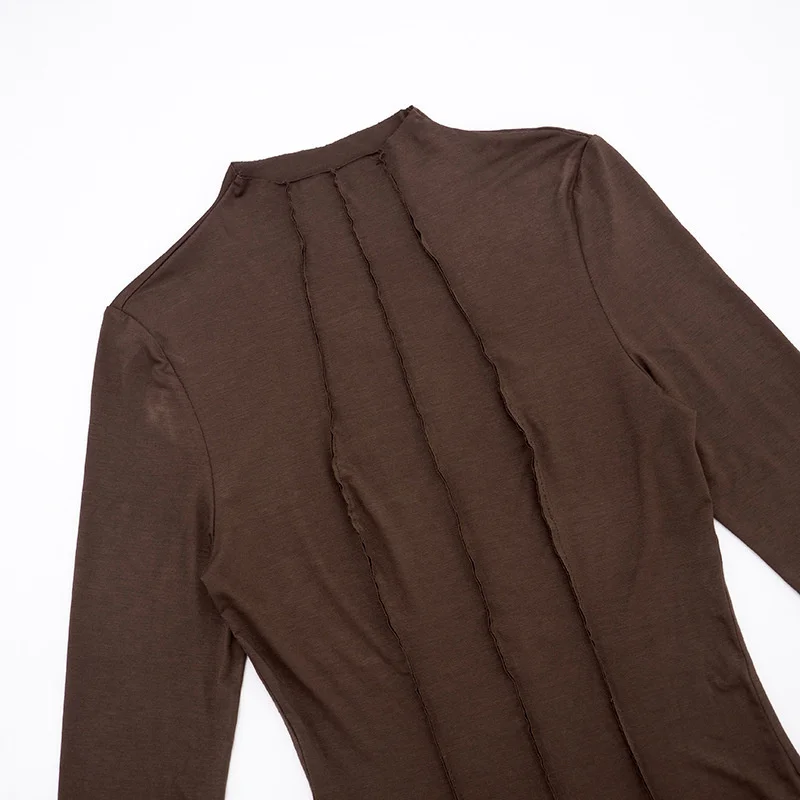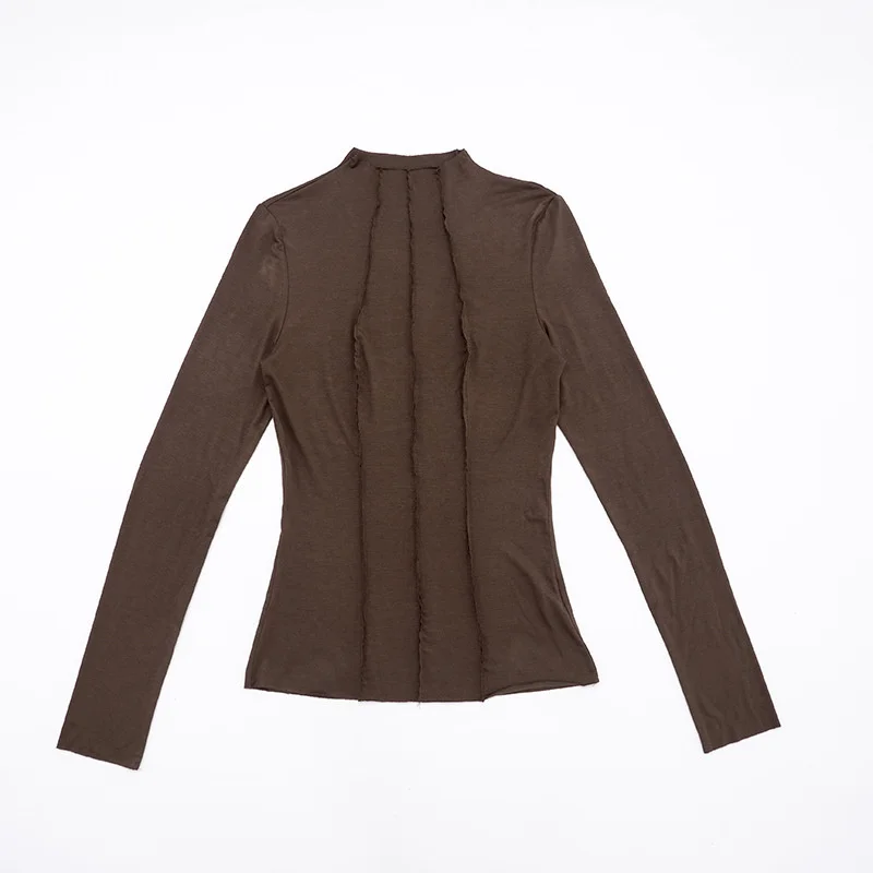 Mozision Patchwork Long Sleeve Sexy T-shirt Women Top Elegant O Neck Slim Pullov