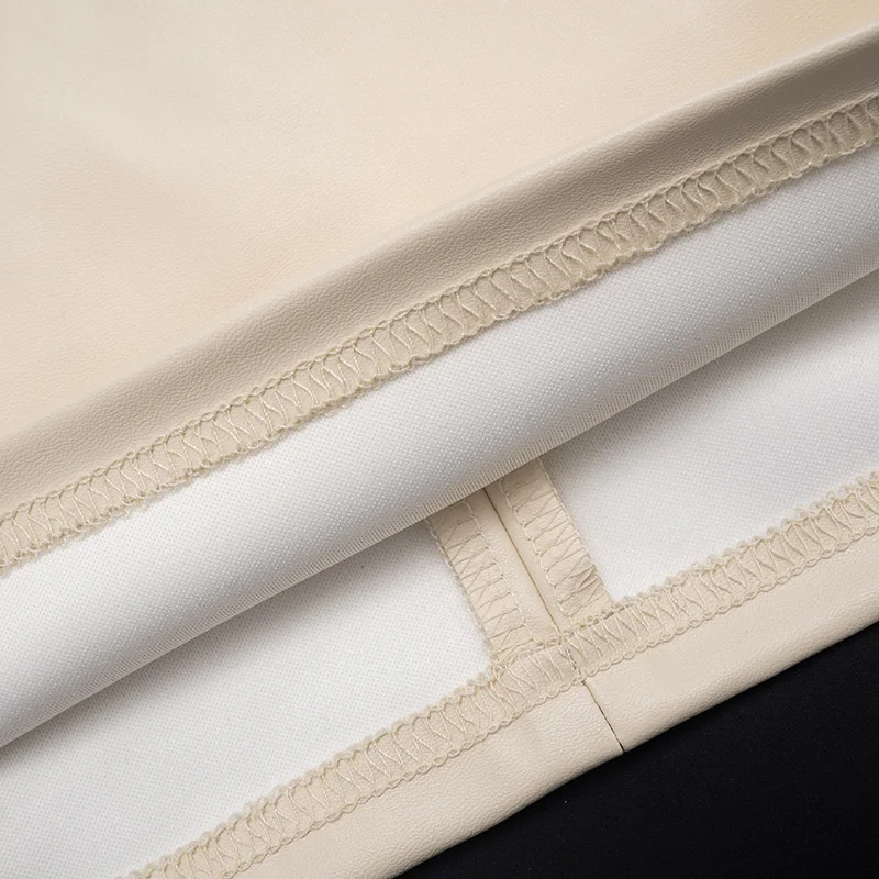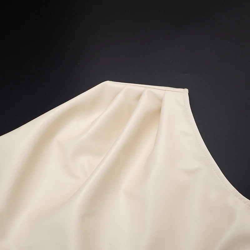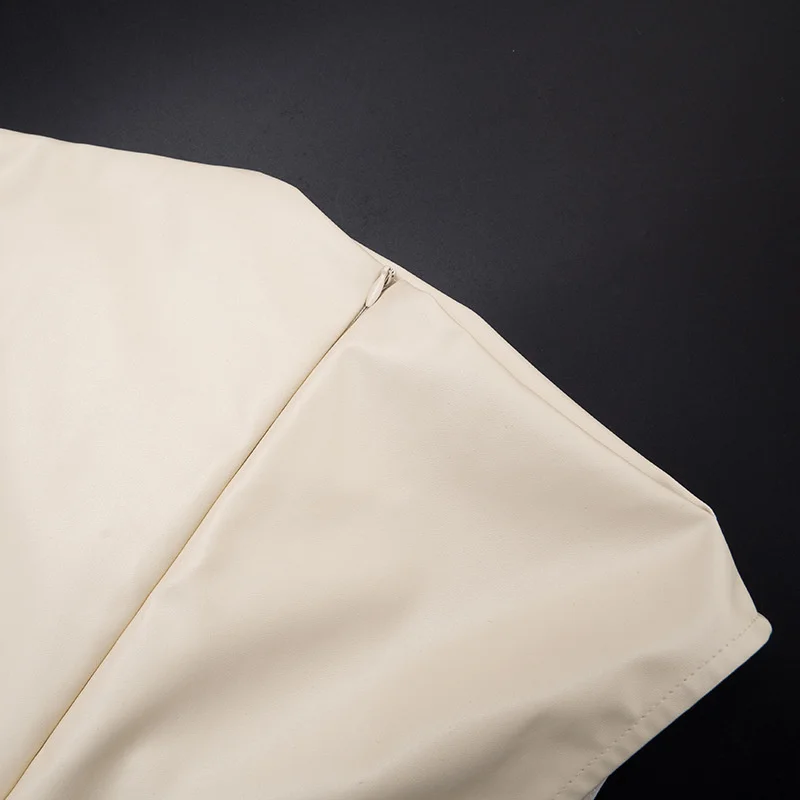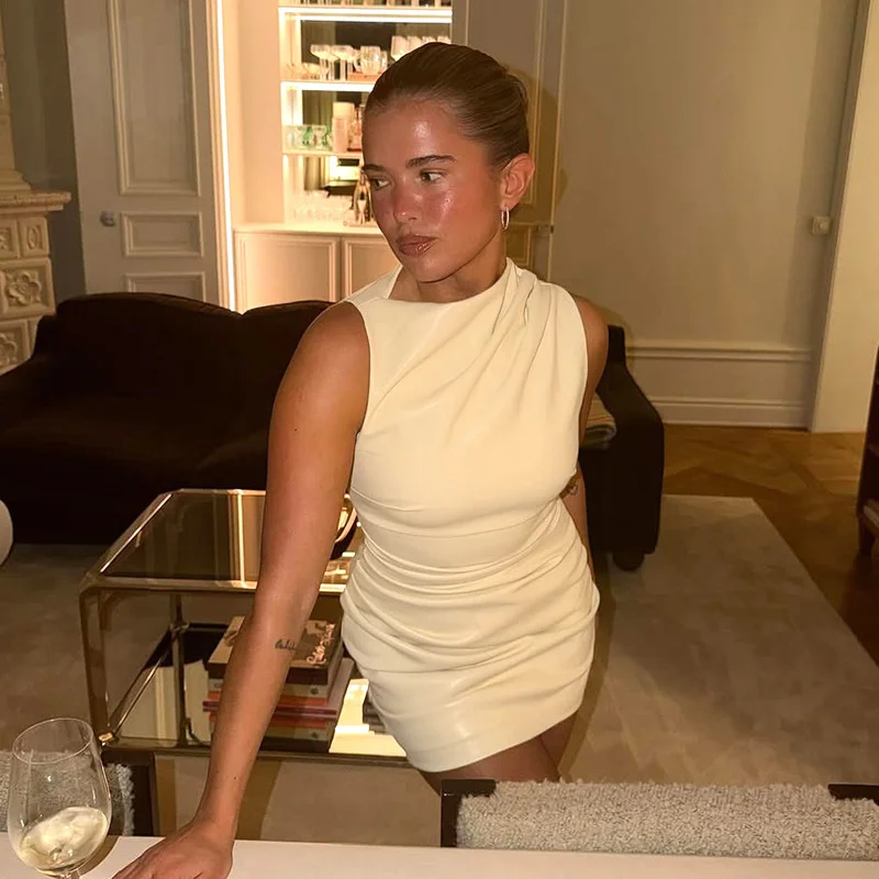 Mozision PU Leather Sleeveless Sexy Mini Dress Women Gown Elegant Half High Coll
