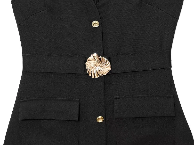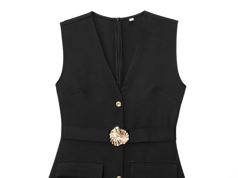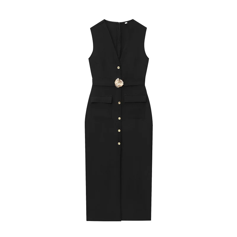 Black Belt Long Dresses for Women Office Sleeveless Dress