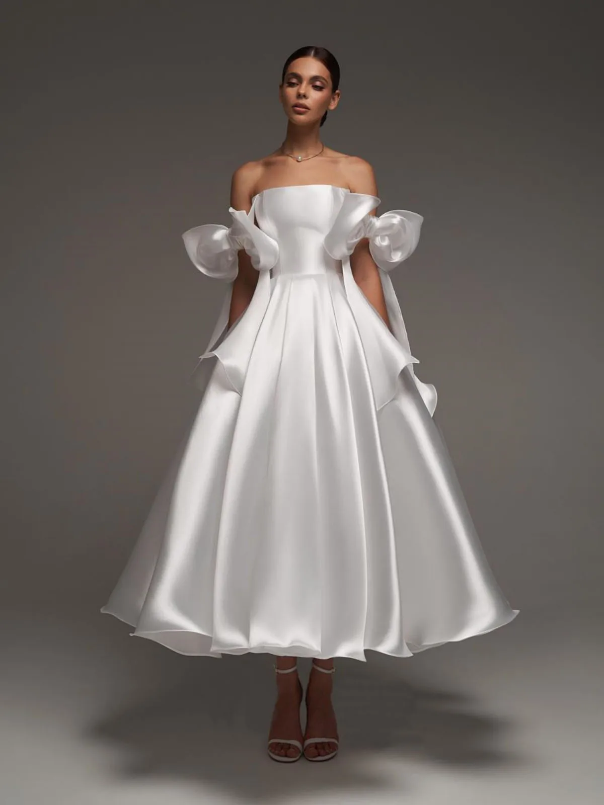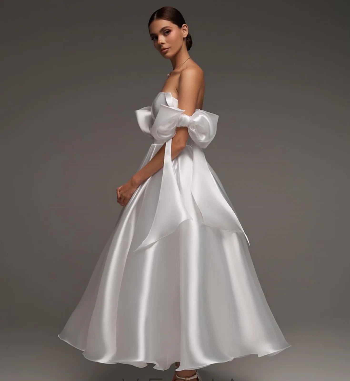 Off Shoulder Princess Wedding Dress for Bride A Line Prom Dresses Tea Length For