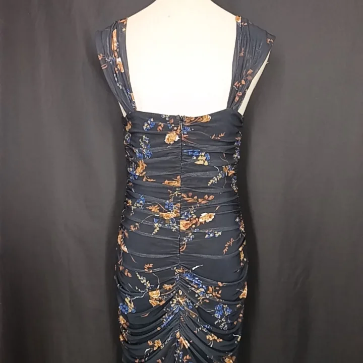 The pleated detailing adds volume and texture to the dress, giving it a dynamic and stylish look.