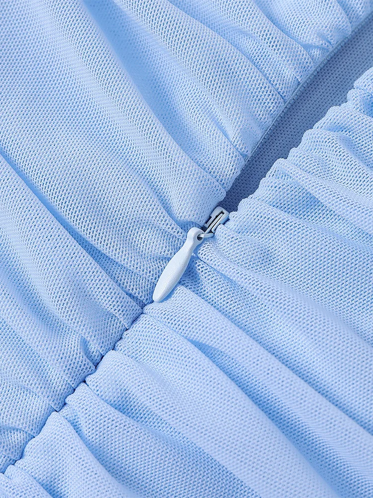 Crafted from mesh material, this dress offers a delicate and breathable feel, ensuring comfort throughout the day.