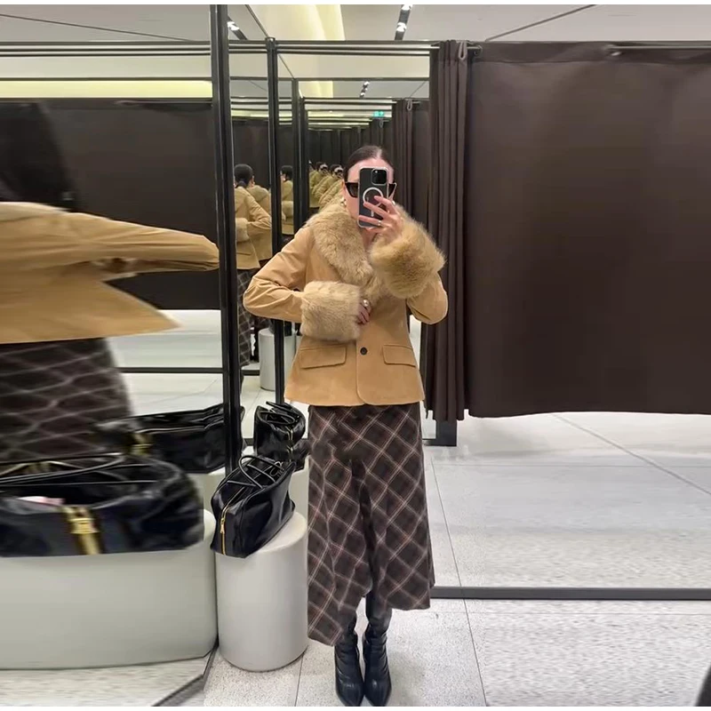Model Number: Stylish Faux Fur Patchwork Jacket Women