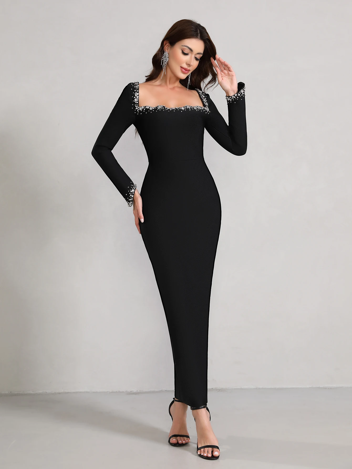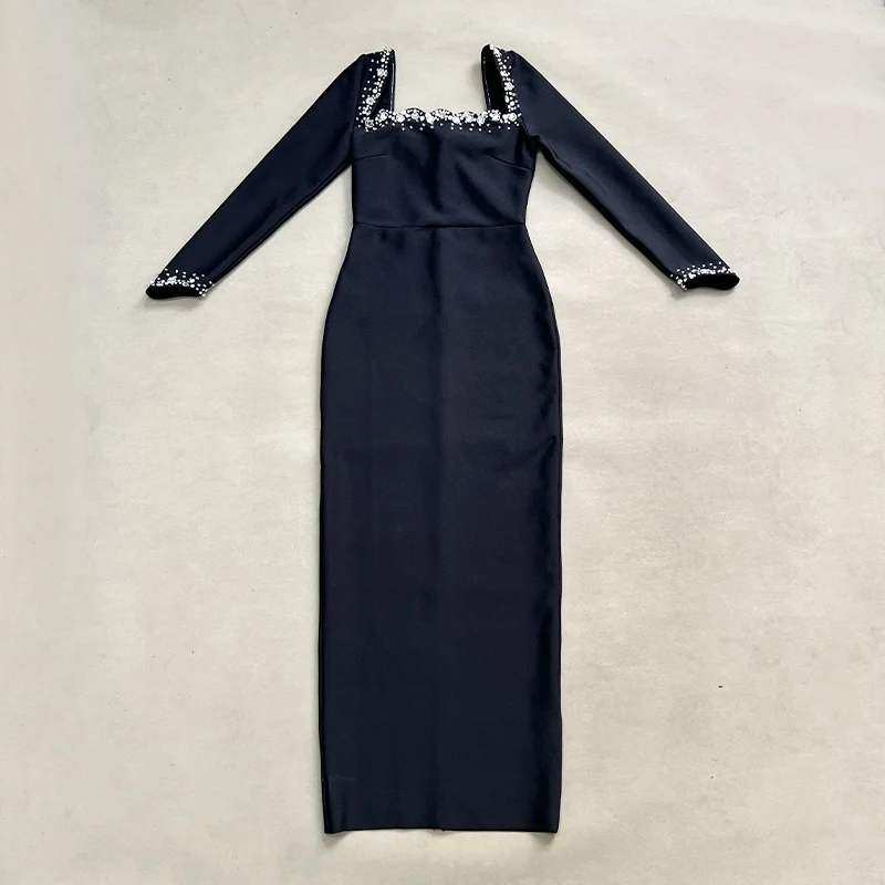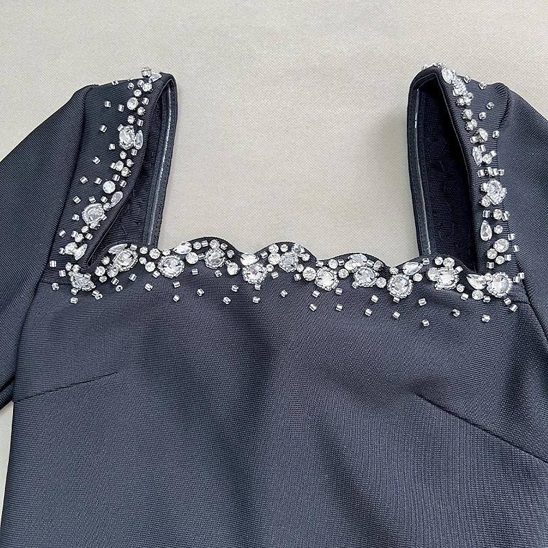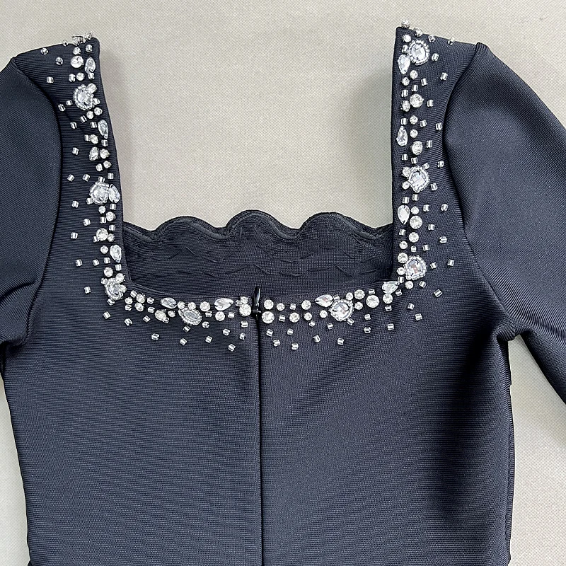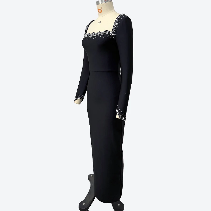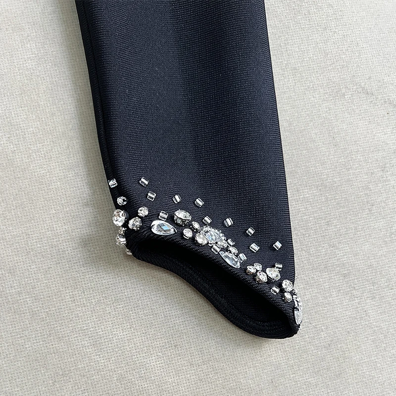 wholesale Autumn Winter Black long sleeves Hand-sewn Rhinestones Sexy Celebrity