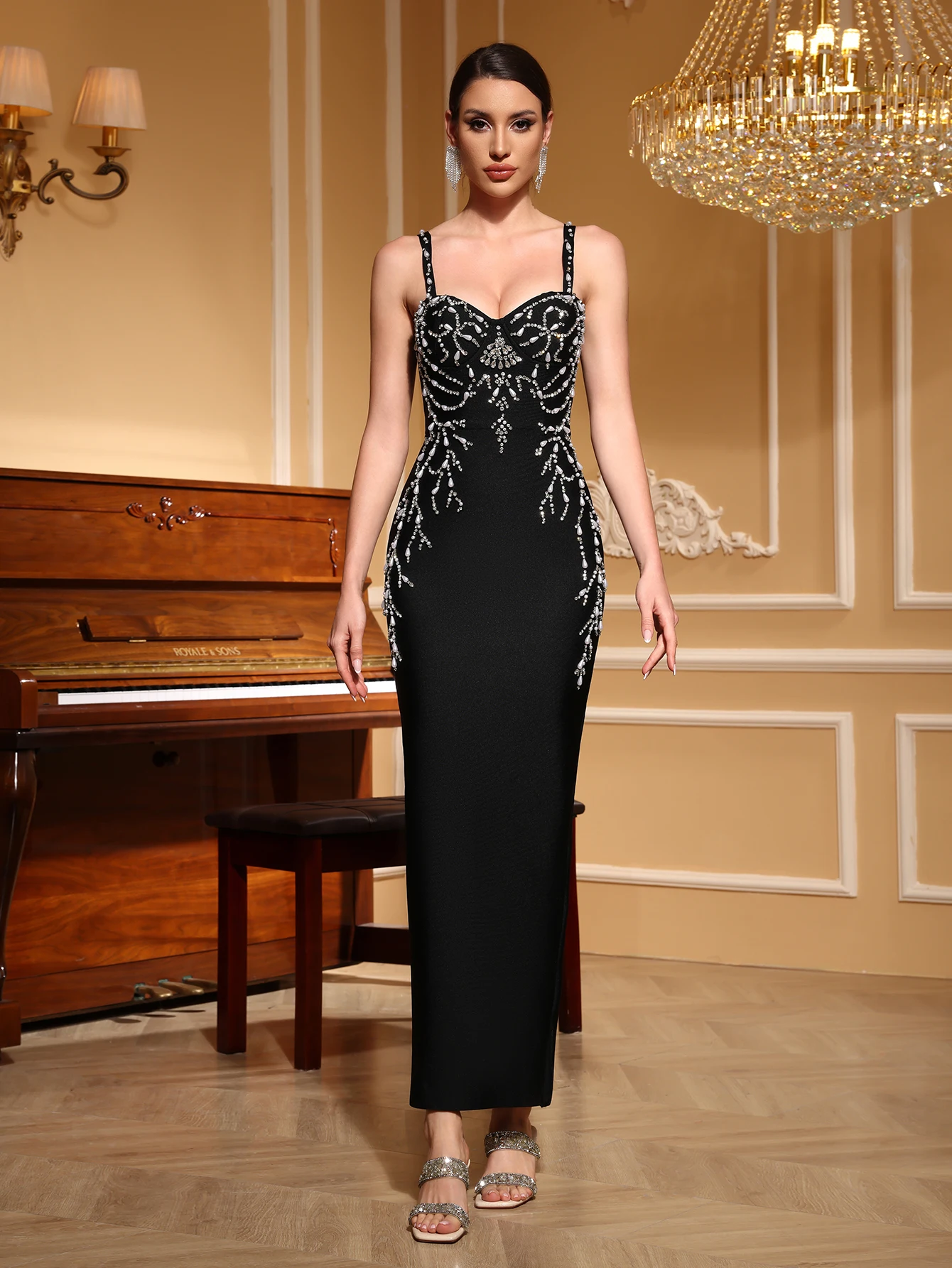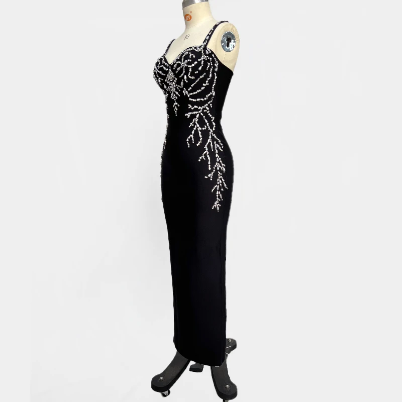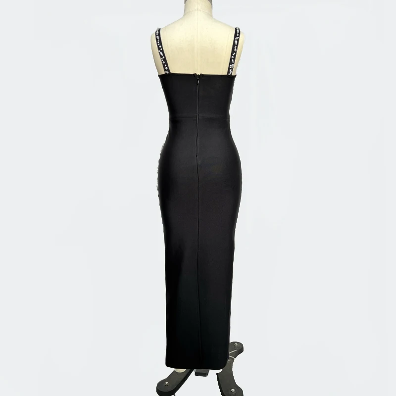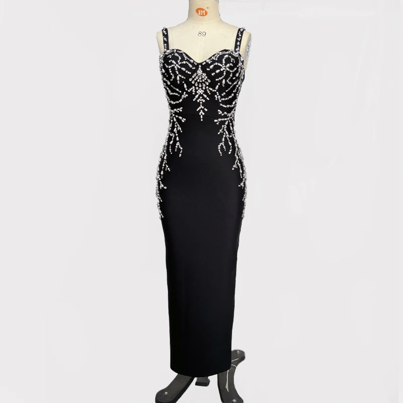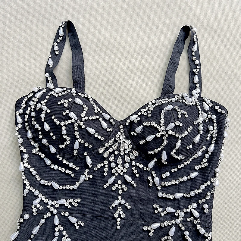 Wholesale Black Spaghetti Strap Ruffles Rhinestones Fashionable sexy Party Celeb